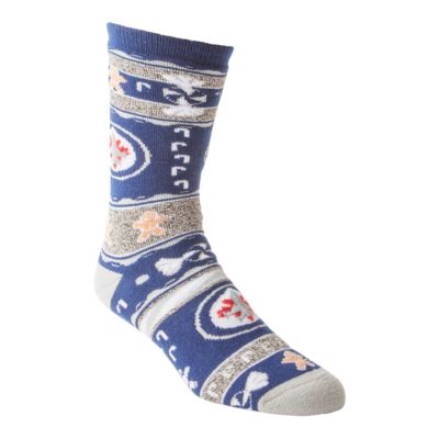 Winnipeg jets hockey blue & white rainbow stripe fuzzy socks.